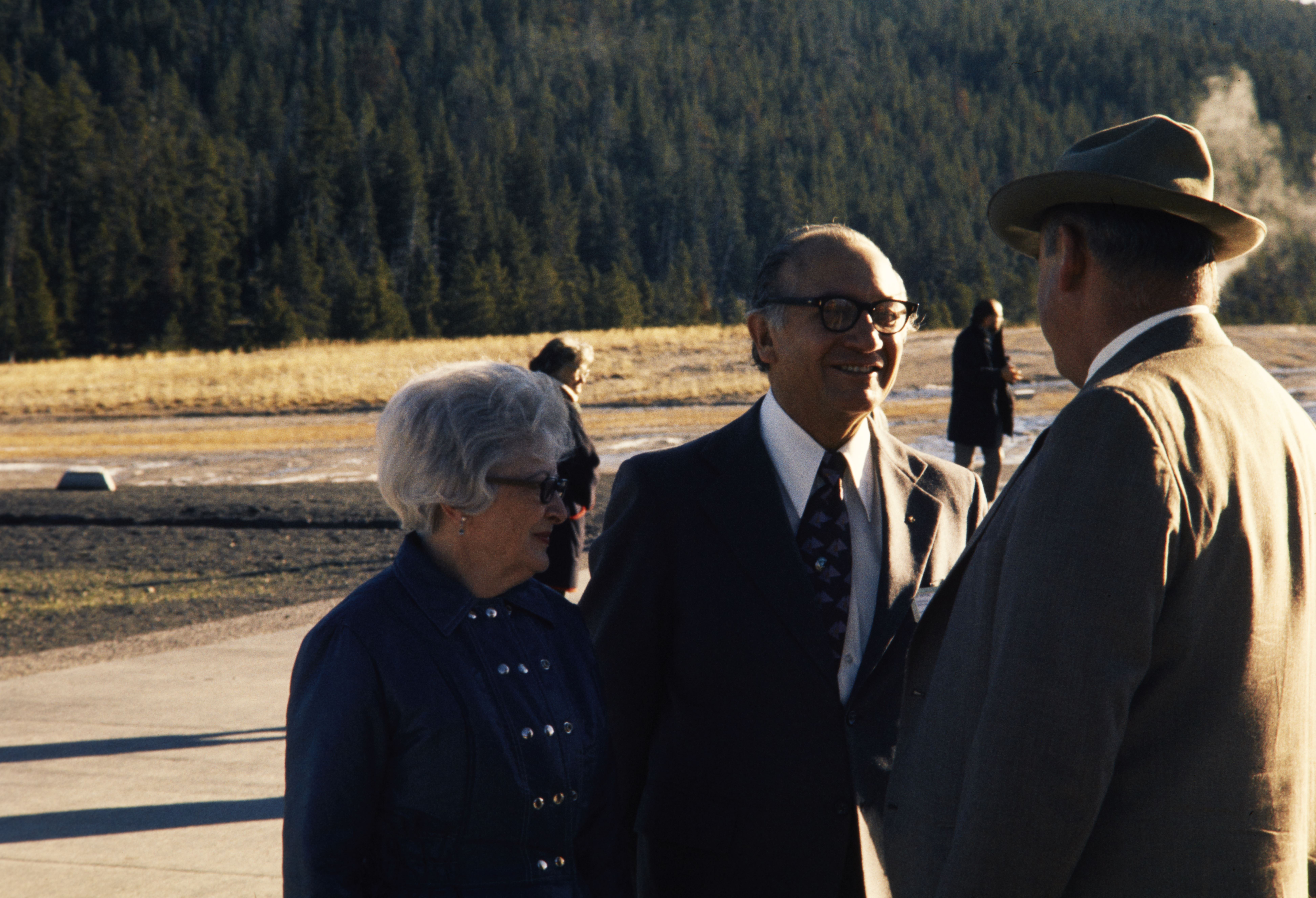 NPS director George B. Hartzog, Jr. talking to a man and his wife.