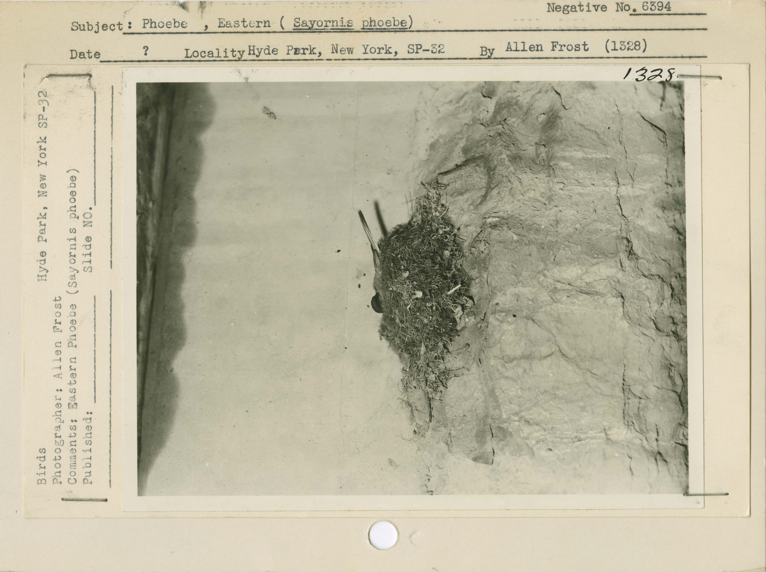 Phoebe, Eastern (Sayornis phoebe). Locality: Hyde Park, New York, State Park 32. Negative #: 6394
