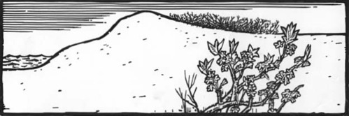 A Beach plum, showing results of wind pruning behind a sand dune.