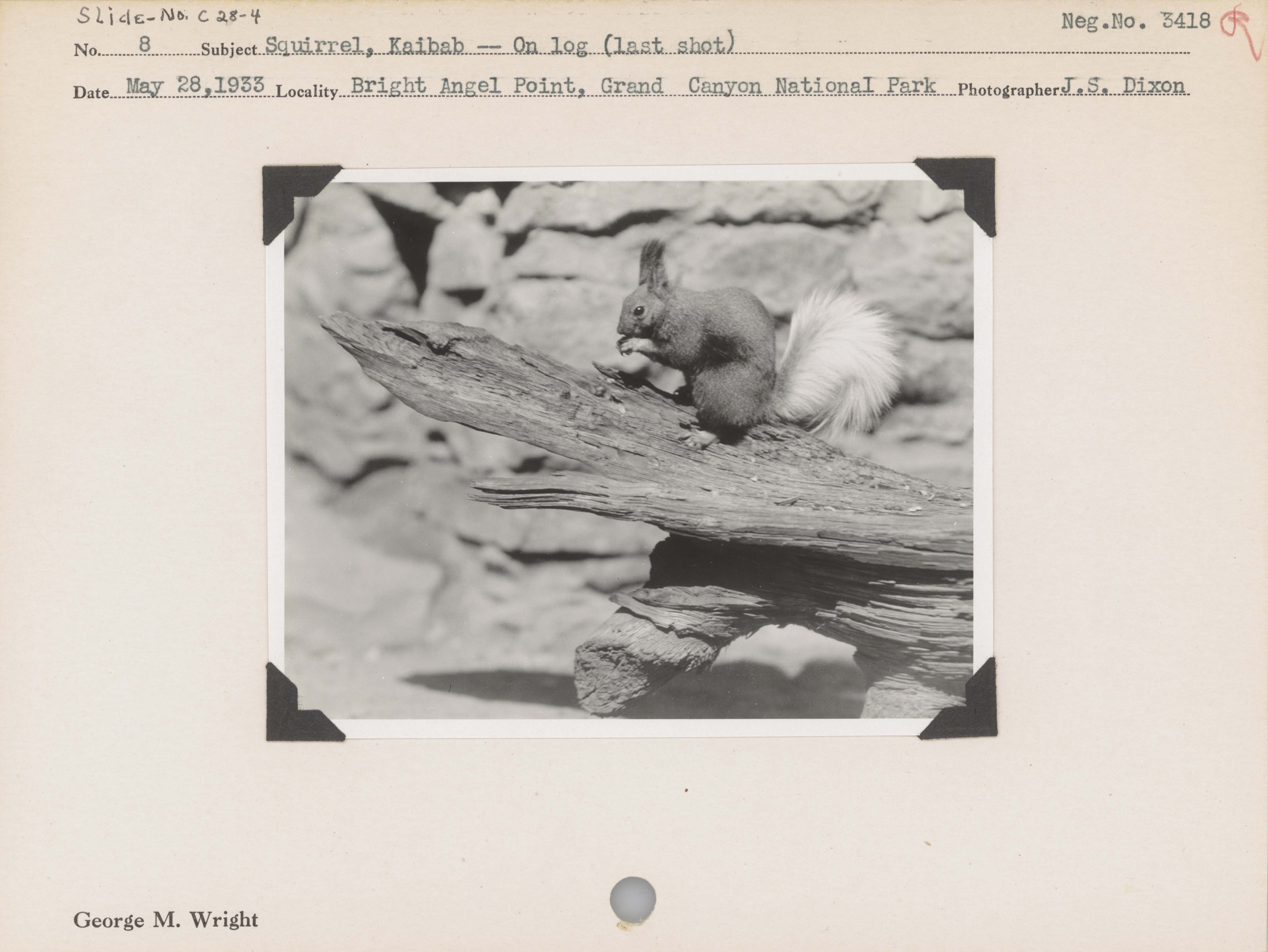 Squirrel, Kaibab--On log (last shot). Locality: Bright Angel Point, Grand Canyon National Park. Negative #: 3418
