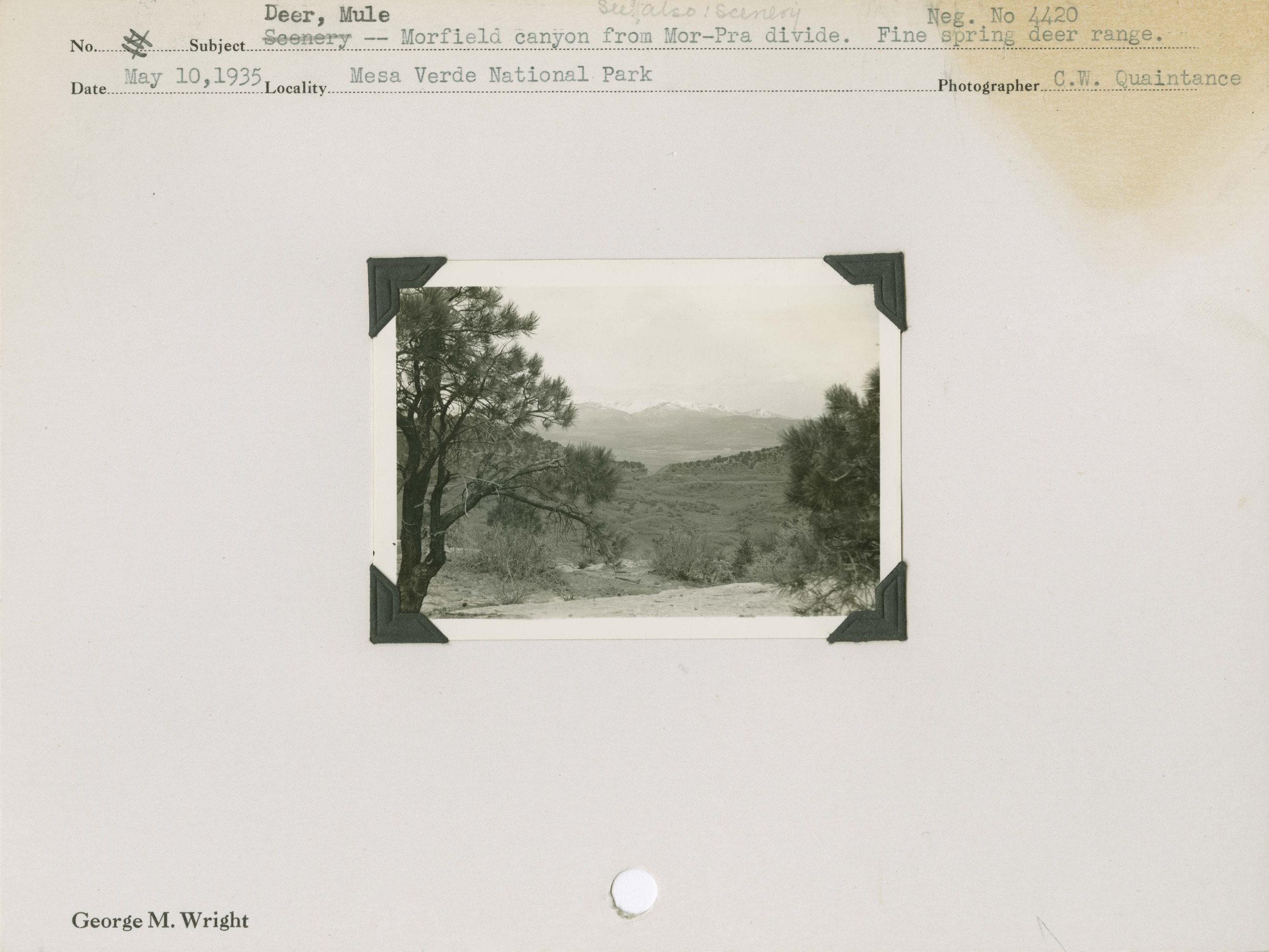 Deer, Mule – Morfield canyon from Mor-Pra divide. Fine spring deer range. Negative #: 4420. Locality: Mesa Verde National Park.
