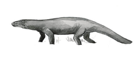 Chirotherium, a lizard-like reptile that lived along the humid, tropical land of tidal mudflats and deltas of prehistoric Capitol Reef National Park.