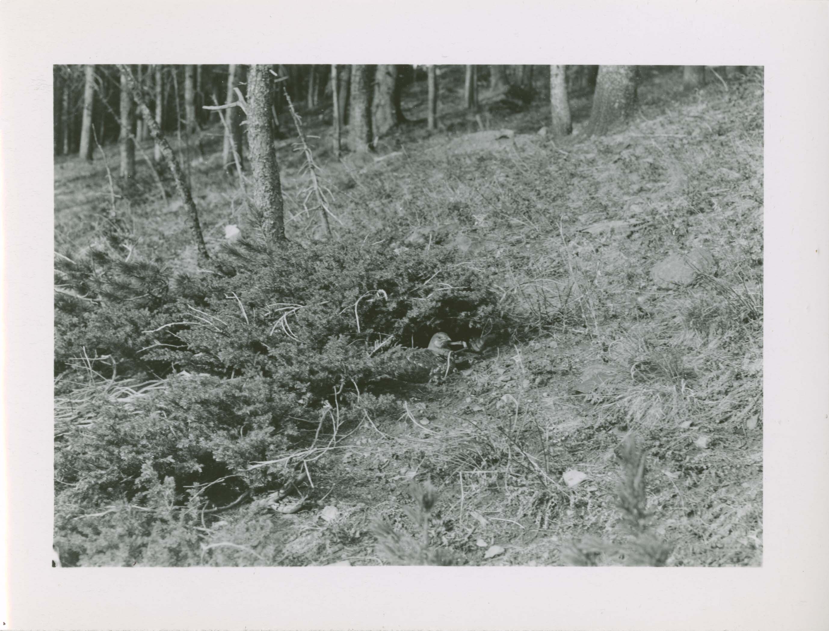Blue grouse dusting. Locality: Dunraven Pass, Yellowstone National Park. Negative #: 11075. [Other photos in this series have a date of 10/24/1945]