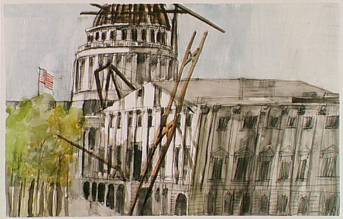 The United States Capitol building under construction.