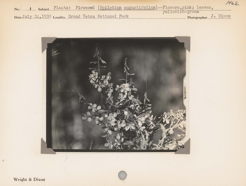 Plants--Fireweed (Epilobium augustifolium)--Flowers, pink; leaves, yellowish-green. Locality: Grand Teton National Park. Negative #: 1462