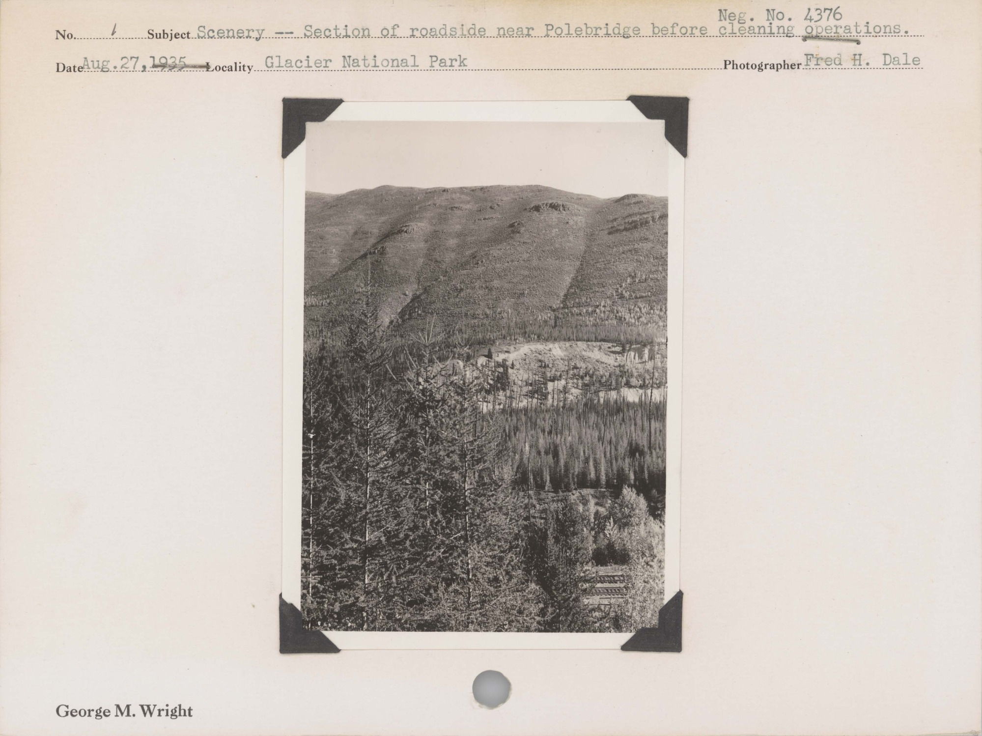 Scenery – Section of roadside near Polebridge before cleaning operations. Negative #: 4376. Locality: Glacier National Park, Montana.