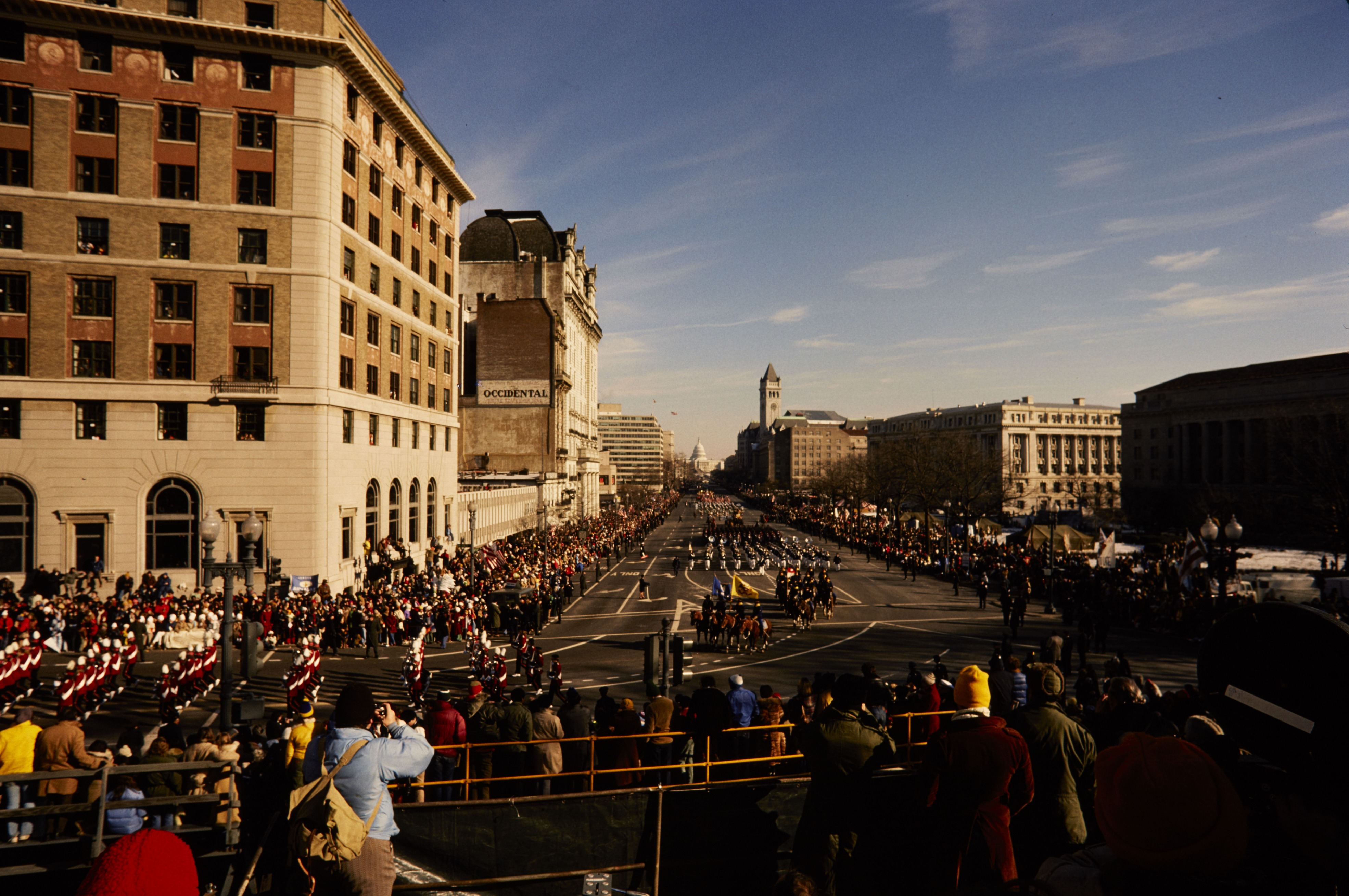 President Jimmy Carter's Inaugural Parade turning onto 15th in Washington, D.C.