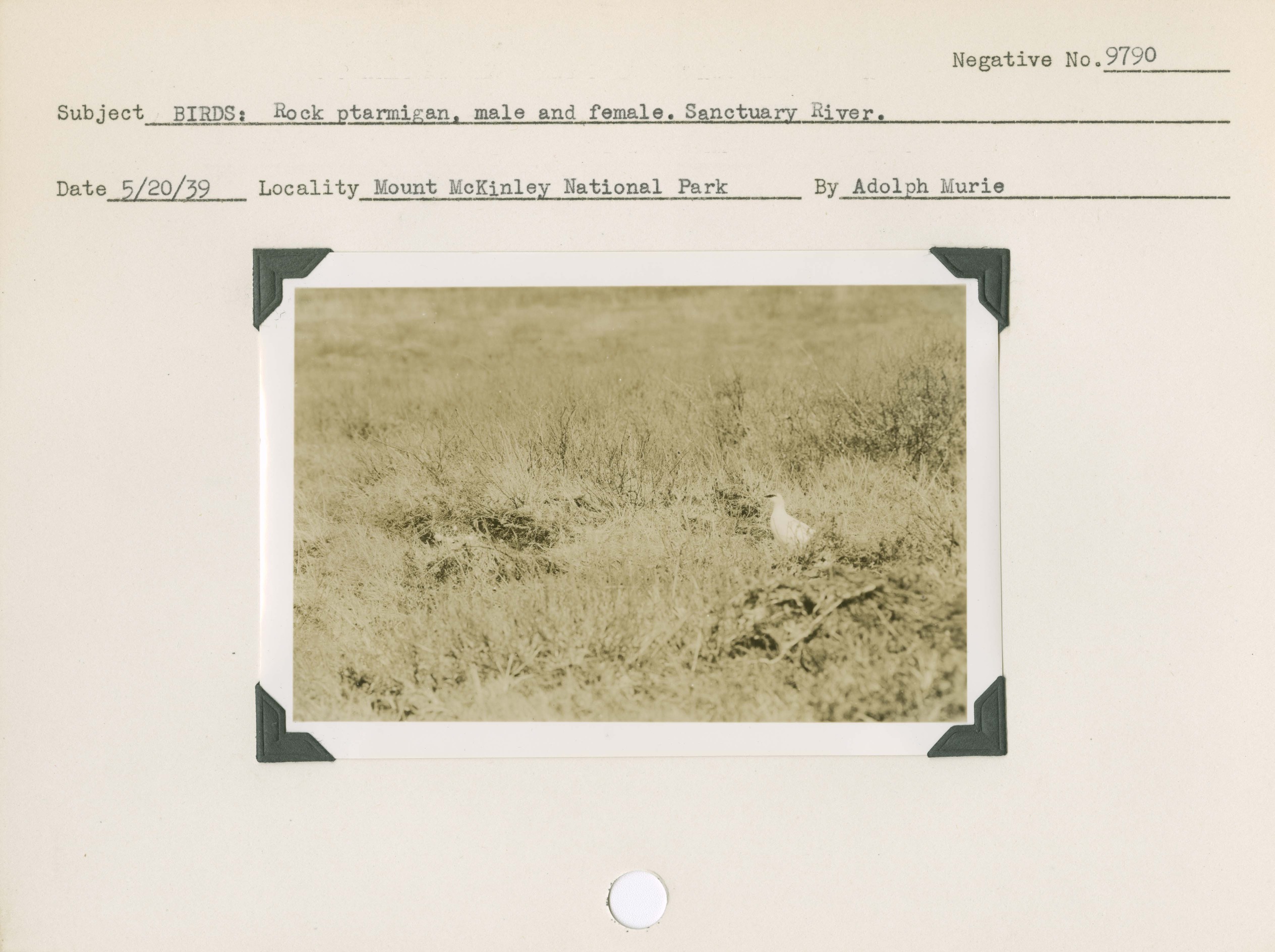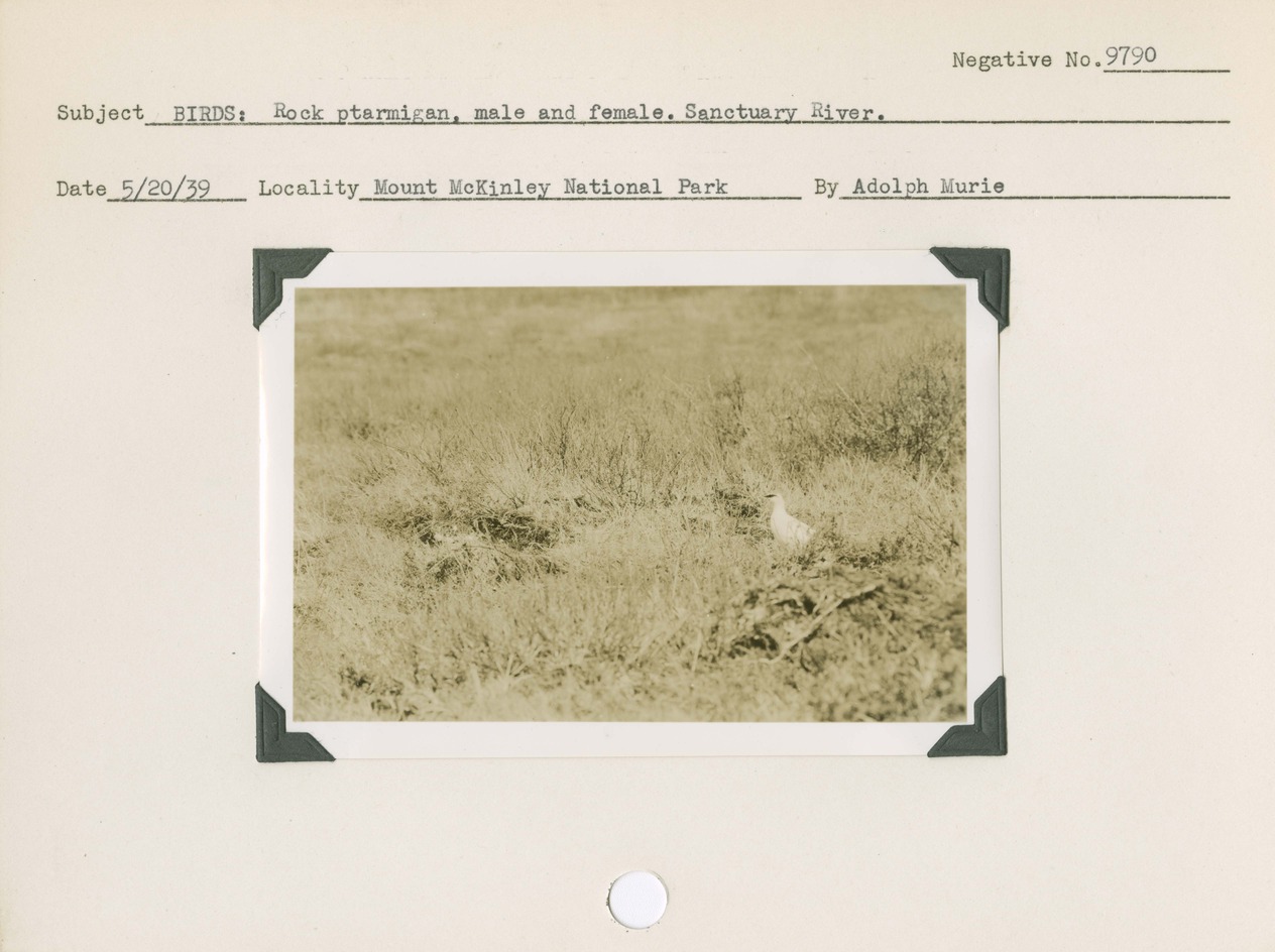 Birds: Rock Ptarmigan. Male and female. Sanctuary River. Locality: Mount McKinley [Denali] National Park. Negative #: 9790