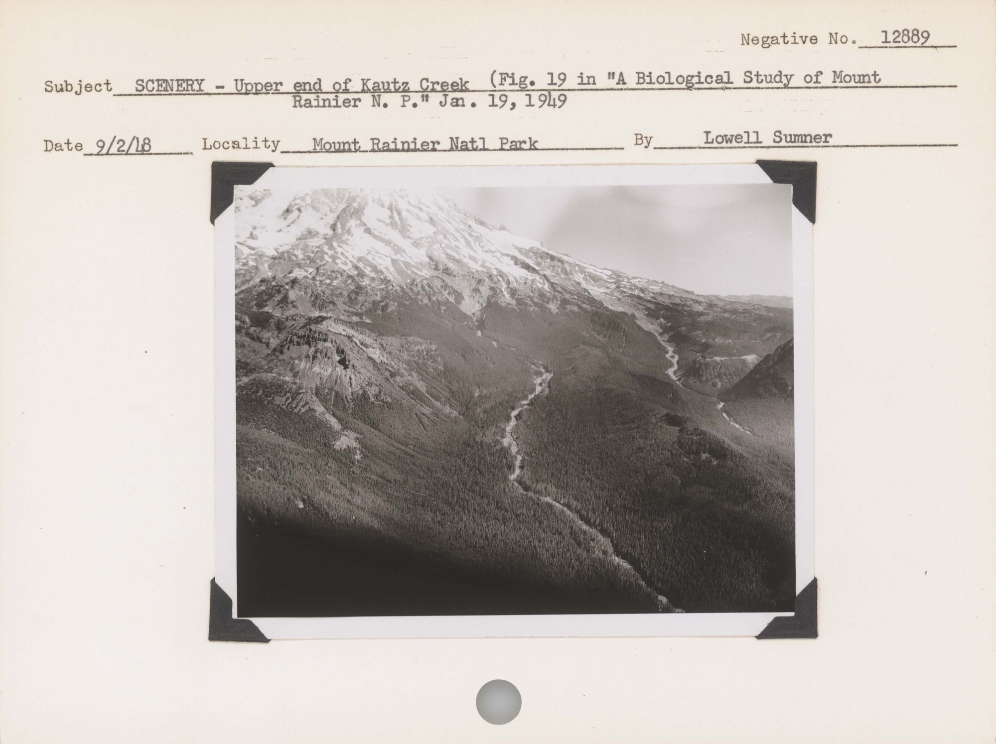 Scenery – Upper end of Kautz Creek (Figure 19 in “Biological Study of Mount Rainier National Park” January 19, 1949). Negative #: 12889. Location: Mount Rainier National Park.