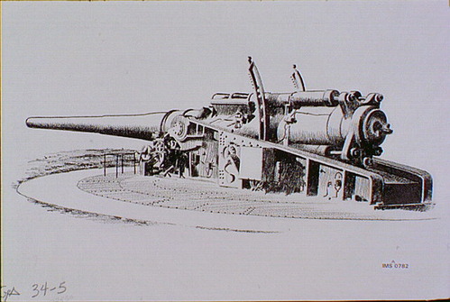 Illustrated together with IMS #00783 (casemate interior) and IMS #00784 (16-inch gun). Illustration used in both Gateway and Golden Gate wayside exhibit projects.; Abbr=WE