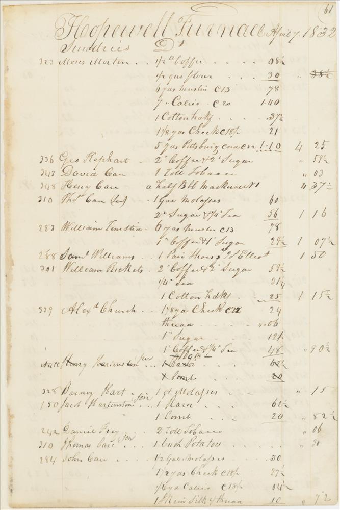| Keyword(s): | hopewell furnace books, store journal, 1831 ; hopewell furnace national historic site (pa.) ; iron-foundries--pennsylvania--berks county--history ; iron industry and trade--pennsylvania--berks county--history ; hopewell furnace national historic site (pa.)--history ; hopewell furnace national historic site (pa.)--management ; berks county (pa.)--history, local | |