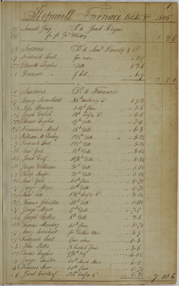 | Keyword(s): | hopewell furnace books, main journal, 1805 ; hopewell furnace national historic site (pa.) ; iron-foundries--pennsylvania--berks county--history ; iron industry and trade--pennsylvania--berks county--history ; hopewell furnace national historic site (pa.)--history ; hopewell furnace national historic site (pa.)--management ; berks county (pa.)--history, local | |