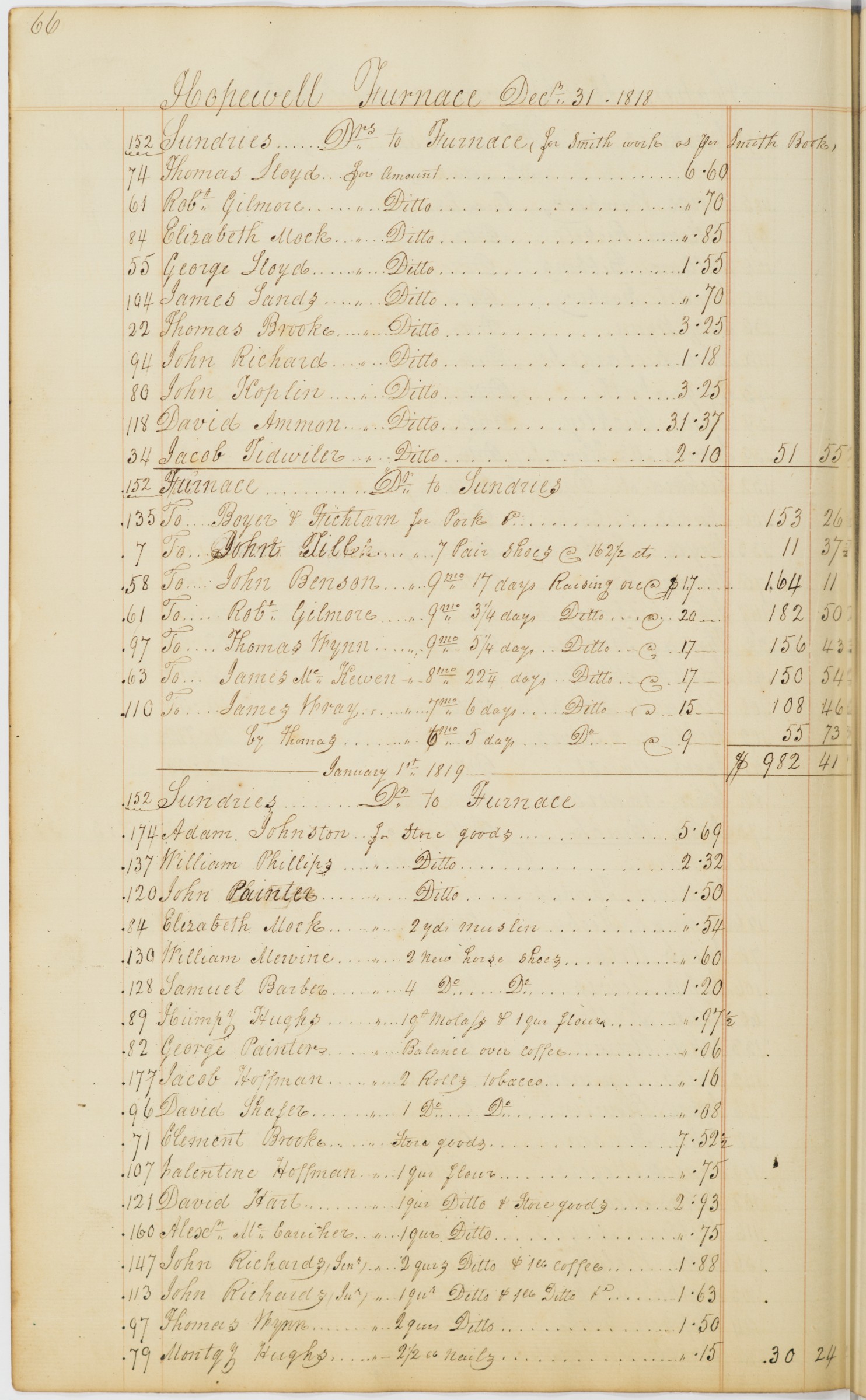 | Keyword(s): | hopewell furnace books, main journal, 1818 ; hopewell furnace national historic site (pa.) ; iron-foundries--pennsylvania--berks county--history ; iron industry and trade--pennsylvania--berks county--history ; hopewell furnace national historic site (pa.)--history ; hopewell furnace national historic site (pa.)--management ; berks county (pa.)--history, local | |