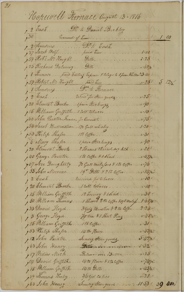 | Keyword(s): | hopewell furnace books, main journal, 1816 ; hopewell furnace national historic site (pa.) ; iron-foundries--pennsylvania--berks county--history ; iron industry and trade--pennsylvania--berks county--history ; hopewell furnace national historic site (pa.)--history ; hopewell furnace national historic site (pa.)--management ; berks county (pa.)--history, local | |
