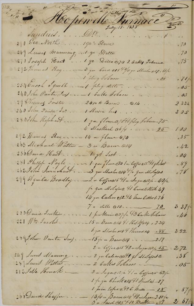 | Keyword(s): | hopewell furnace books, store journal, 1837 ; hopewell furnace national historic site (pa.) ; iron-foundries--pennsylvania--berks county--history ; iron industry and trade--pennsylvania--berks county--history ; hopewell furnace national historic site (pa.)--history ; hopewell furnace national historic site (pa.)--management ; berks county (pa.)--history, local | |