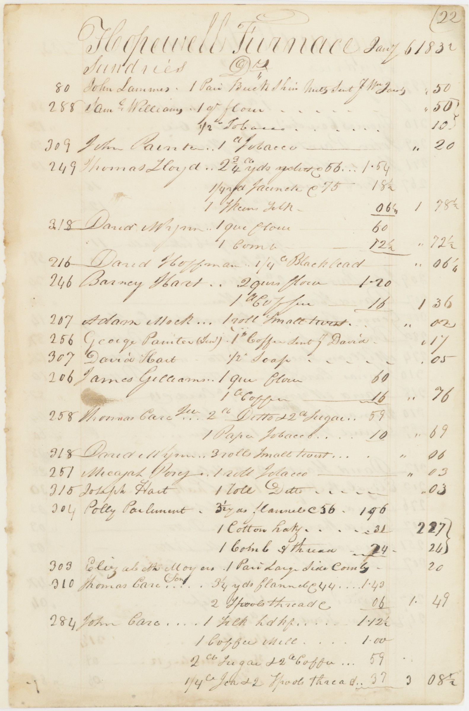 | Keyword(s): | hopewell furnace books, store journal, 1831 ; hopewell furnace national historic site (pa.) ; iron-foundries--pennsylvania--berks county--history ; iron industry and trade--pennsylvania--berks county--history ; hopewell furnace national historic site (pa.)--history ; hopewell furnace national historic site (pa.)--management ; berks county (pa.)--history, local | |