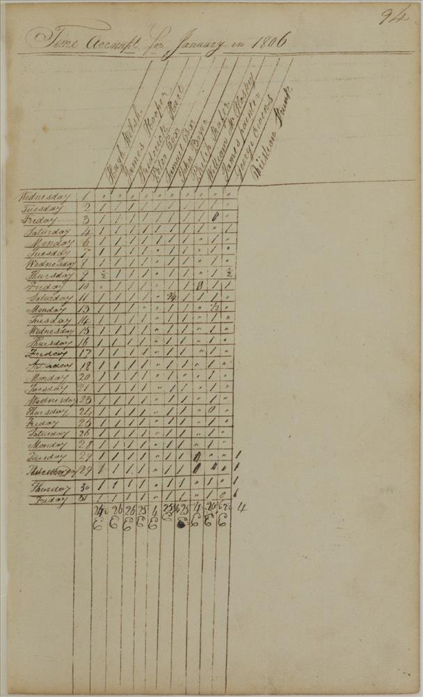 | Book Summary: | Apr 1802-Apr 1805 Time Book SM1 part 1 | |