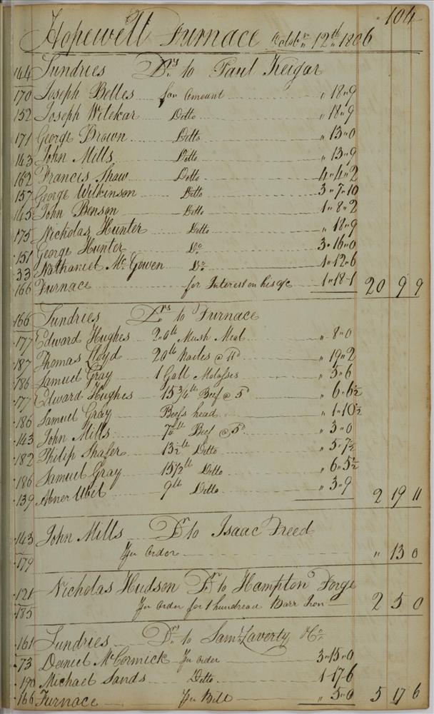 | Keyword(s): | hopewell furnace books, main journal, 1805 ; hopewell furnace national historic site (pa.) ; iron-foundries--pennsylvania--berks county--history ; iron industry and trade--pennsylvania--berks county--history ; hopewell furnace national historic site (pa.)--history ; hopewell furnace national historic site (pa.)--management ; berks county (pa.)--history, local | |