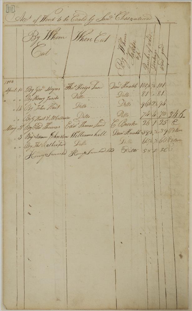 | Description: | Wood from Sam Chestnutwood, CordWood Accounts, From: 1802, To: 1806 | |