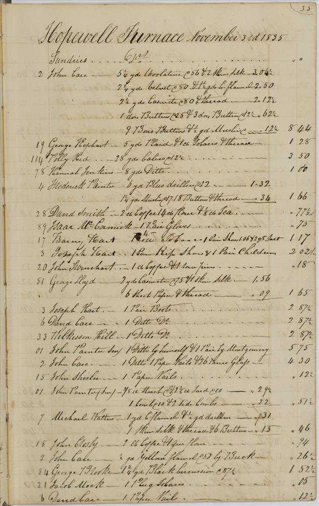 | Keyword(s): | hopewell furnace books, store journal, 1835 ; hopewell furnace national historic site (pa.) ; iron-foundries--pennsylvania--berks county--history ; iron industry and trade--pennsylvania--berks county--history ; hopewell furnace national historic site (pa.)--history ; hopewell furnace national historic site (pa.)--management ; berks county (pa.)--history, local | |