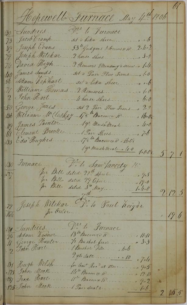 | Keyword(s): | hopewell furnace books, main journal, 1805 ; hopewell furnace national historic site (pa.) ; iron-foundries--pennsylvania--berks county--history ; iron industry and trade--pennsylvania--berks county--history ; hopewell furnace national historic site (pa.)--history ; hopewell furnace national historic site (pa.)--management ; berks county (pa.)--history, local | |