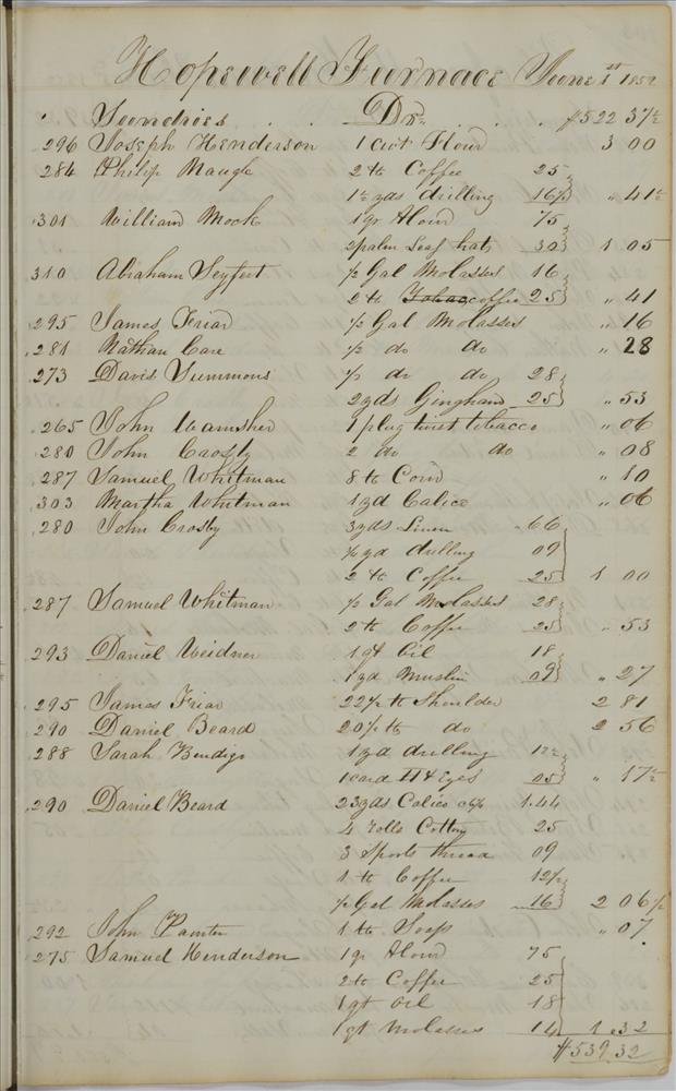 | Keyword(s): | hopewell furnace books, store journal, 1851 ; hopewell furnace national historic site (pa.) ; iron-foundries--pennsylvania--berks county--history ; iron industry and trade--pennsylvania--berks county--history ; hopewell furnace national historic site (pa.)--history ; hopewell furnace national historic site (pa.)--management ; berks county (pa.)--history, local | |