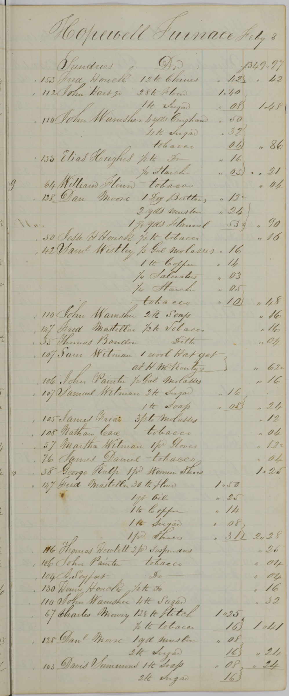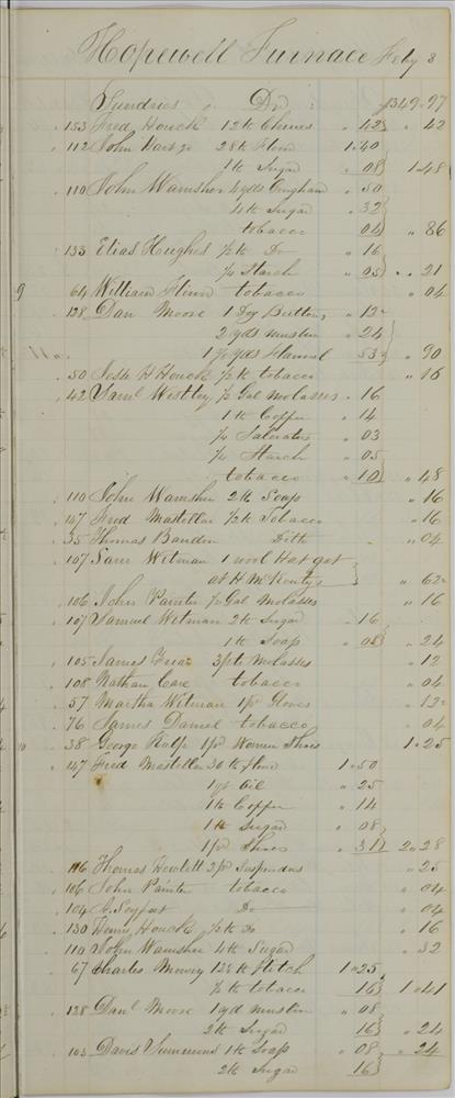 | Keyword(s): | hopewell furnace books, store journal, 1853 ; hopewell furnace national historic site (pa.) ; iron-foundries--pennsylvania--berks county--history ; iron industry and trade--pennsylvania--berks county--history ; hopewell furnace national historic site (pa.)--history ; hopewell furnace national historic site (pa.)--management ; berks county (pa.)--history, local | |