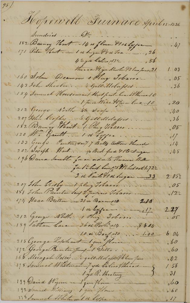 | Keyword(s): | hopewell furnace books, store journal, 1835 ; hopewell furnace national historic site (pa.) ; iron-foundries--pennsylvania--berks county--history ; iron industry and trade--pennsylvania--berks county--history ; hopewell furnace national historic site (pa.)--history ; hopewell furnace national historic site (pa.)--management ; berks county (pa.)--history, local | |