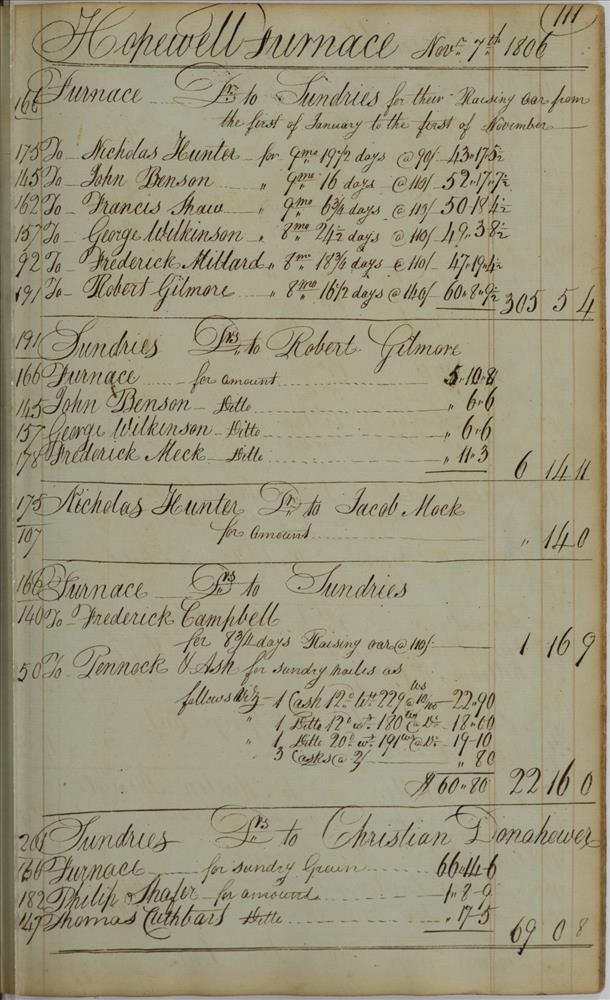 | Keyword(s): | hopewell furnace books, main journal, 1805 ; hopewell furnace national historic site (pa.) ; iron-foundries--pennsylvania--berks county--history ; iron industry and trade--pennsylvania--berks county--history ; hopewell furnace national historic site (pa.)--history ; hopewell furnace national historic site (pa.)--management ; berks county (pa.)--history, local | |
