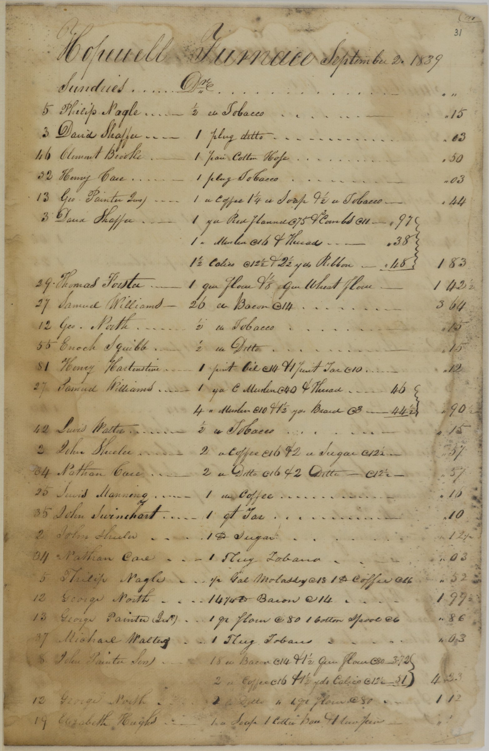 | Keyword(s): | hopewell furnace books, store journal, 1839 ; hopewell furnace national historic site (pa.) ; iron-foundries--pennsylvania--berks county--history ; iron industry and trade--pennsylvania--berks county--history ; hopewell furnace national historic site (pa.)--history ; hopewell furnace national historic site (pa.)--management ; berks county (pa.)--history, local | |