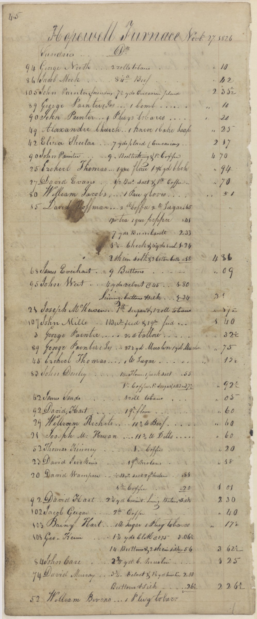 | Keyword(s): | hopewell furnace books, store journal, 1826 ; hopewell furnace national historic site (pa.) ; iron-foundries--pennsylvania--berks county--history ; iron industry and trade--pennsylvania--berks county--history ; hopewell furnace national historic site (pa.)--history ; hopewell furnace national historic site (pa.)--management ; berks county (pa.)--history, local | |