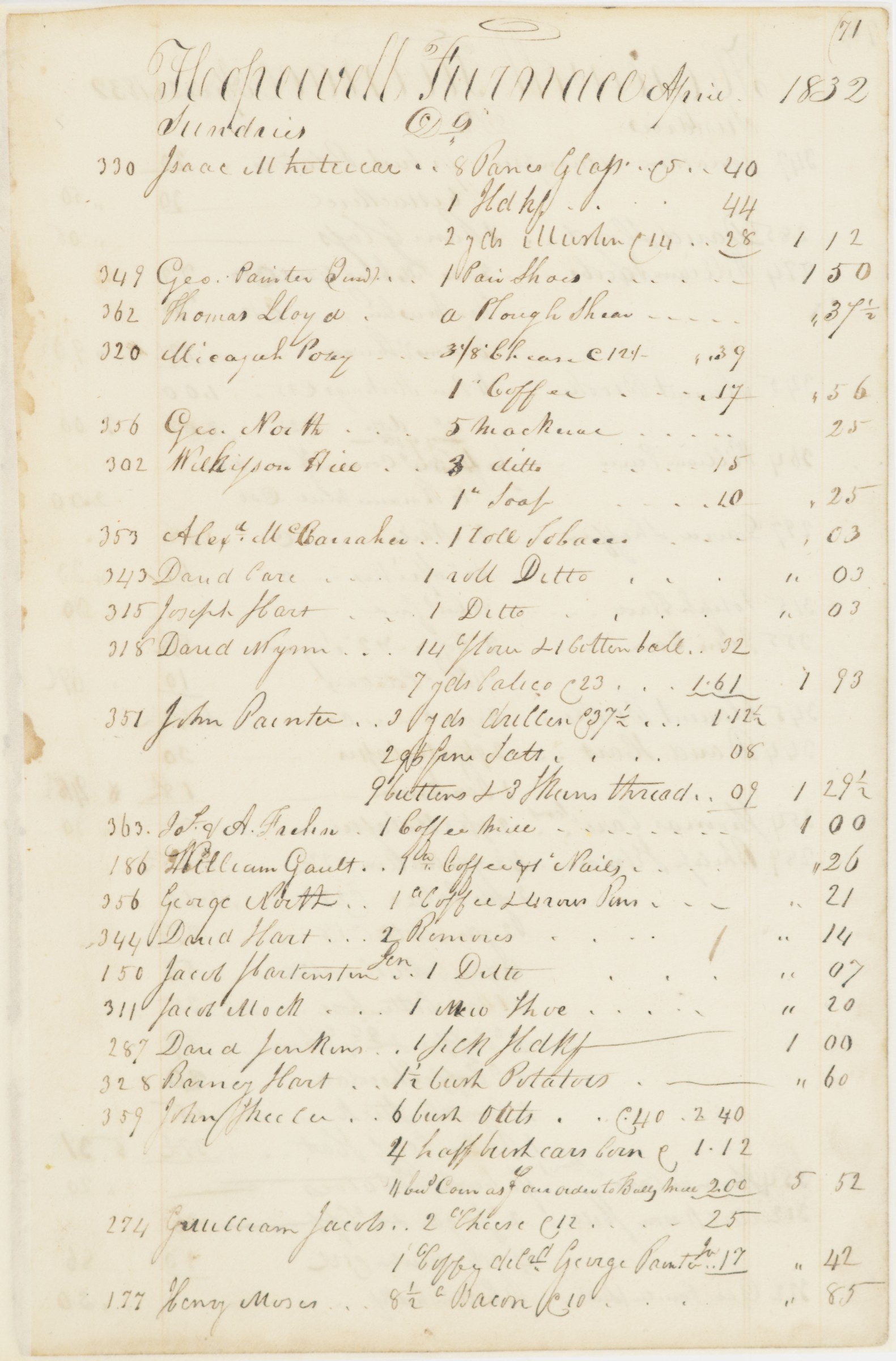 | Keyword(s): | hopewell furnace books, store journal, 1831 ; hopewell furnace national historic site (pa.) ; iron-foundries--pennsylvania--berks county--history ; iron industry and trade--pennsylvania--berks county--history ; hopewell furnace national historic site (pa.)--history ; hopewell furnace national historic site (pa.)--management ; berks county (pa.)--history, local | |