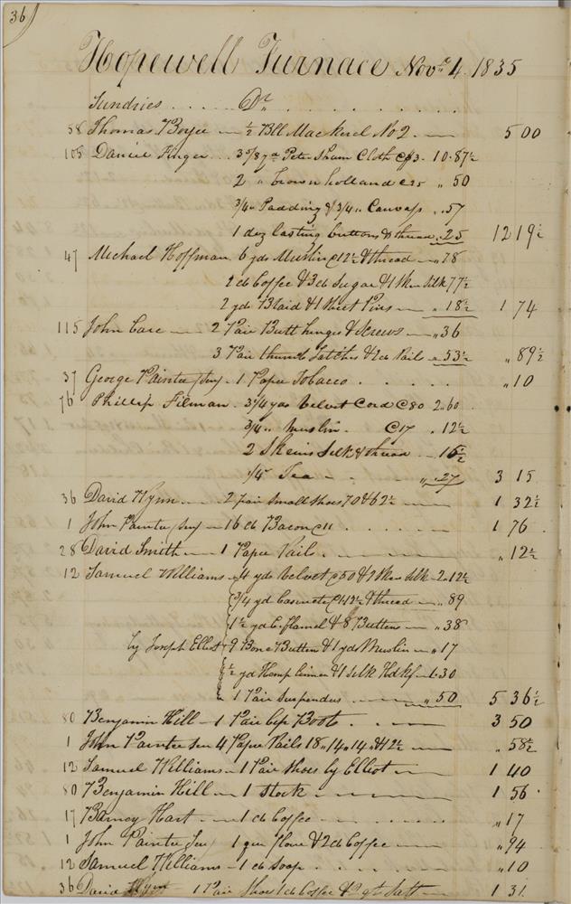 | Keyword(s): | hopewell furnace books, store journal, 1835 ; hopewell furnace national historic site (pa.) ; iron-foundries--pennsylvania--berks county--history ; iron industry and trade--pennsylvania--berks county--history ; hopewell furnace national historic site (pa.)--history ; hopewell furnace national historic site (pa.)--management ; berks county (pa.)--history, local | |