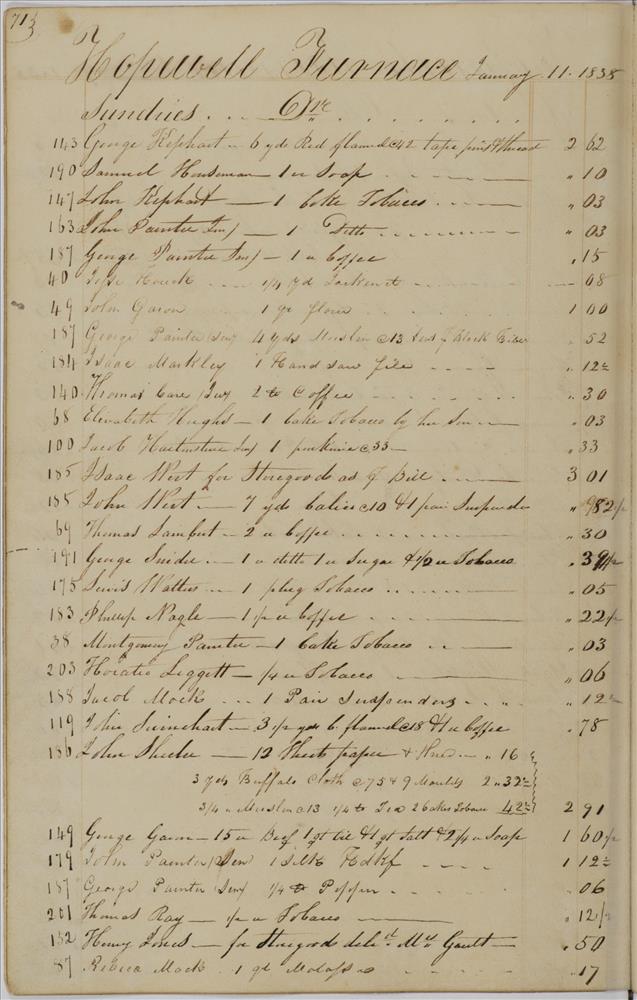 | Keyword(s): | hopewell furnace books, store journal, 1837 ; hopewell furnace national historic site (pa.) ; iron-foundries--pennsylvania--berks county--history ; iron industry and trade--pennsylvania--berks county--history ; hopewell furnace national historic site (pa.)--history ; hopewell furnace national historic site (pa.)--management ; berks county (pa.)--history, local | |