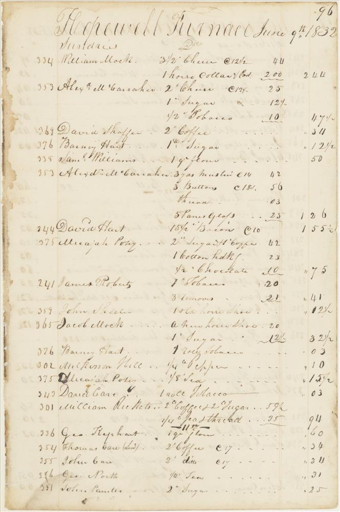 | Keyword(s): | hopewell furnace books, store journal, 1831 ; hopewell furnace national historic site (pa.) ; iron-foundries--pennsylvania--berks county--history ; iron industry and trade--pennsylvania--berks county--history ; hopewell furnace national historic site (pa.)--history ; hopewell furnace national historic site (pa.)--management ; berks county (pa.)--history, local | |