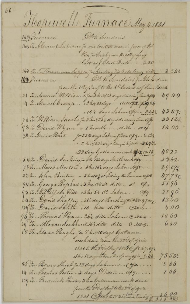 | Keyword(s): | hopewell furnace books, main journal, 1830 ; hopewell furnace national historic site (pa.) ; iron-foundries--pennsylvania--berks county--history ; iron industry and trade--pennsylvania--berks county--history ; hopewell furnace national historic site (pa.)--history ; hopewell furnace national historic site (pa.)--management ; berks county (pa.)--history, local | |