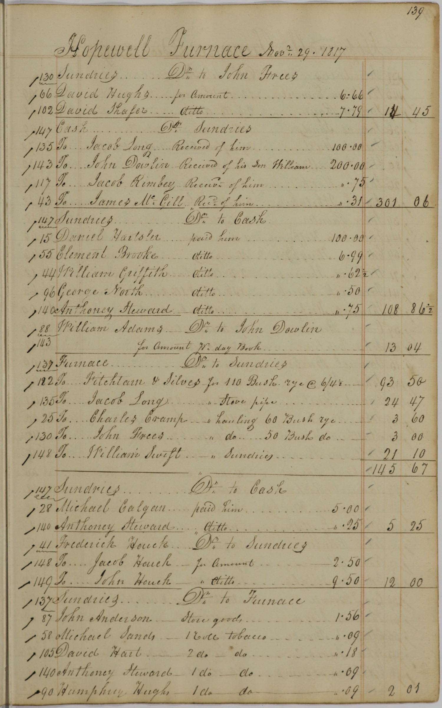 | Keyword(s): | hopewell furnace books, main journal, 1816 ; hopewell furnace national historic site (pa.) ; iron-foundries--pennsylvania--berks county--history ; iron industry and trade--pennsylvania--berks county--history ; hopewell furnace national historic site (pa.)--history ; hopewell furnace national historic site (pa.)--management ; berks county (pa.)--history, local | |