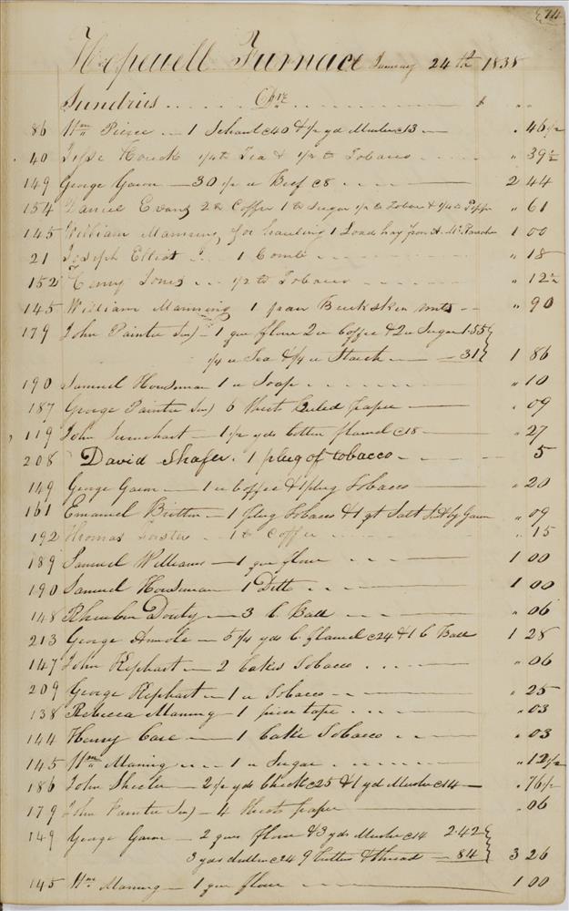 | Keyword(s): | hopewell furnace books, store journal, 1837 ; hopewell furnace national historic site (pa.) ; iron-foundries--pennsylvania--berks county--history ; iron industry and trade--pennsylvania--berks county--history ; hopewell furnace national historic site (pa.)--history ; hopewell furnace national historic site (pa.)--management ; berks county (pa.)--history, local | |