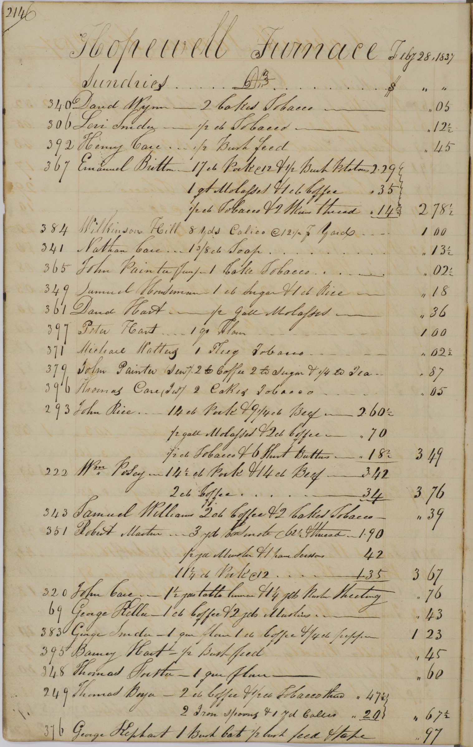 | Keyword(s): | hopewell furnace books, store journal, 1835 ; hopewell furnace national historic site (pa.) ; iron-foundries--pennsylvania--berks county--history ; iron industry and trade--pennsylvania--berks county--history ; hopewell furnace national historic site (pa.)--history ; hopewell furnace national historic site (pa.)--management ; berks county (pa.)--history, local | |