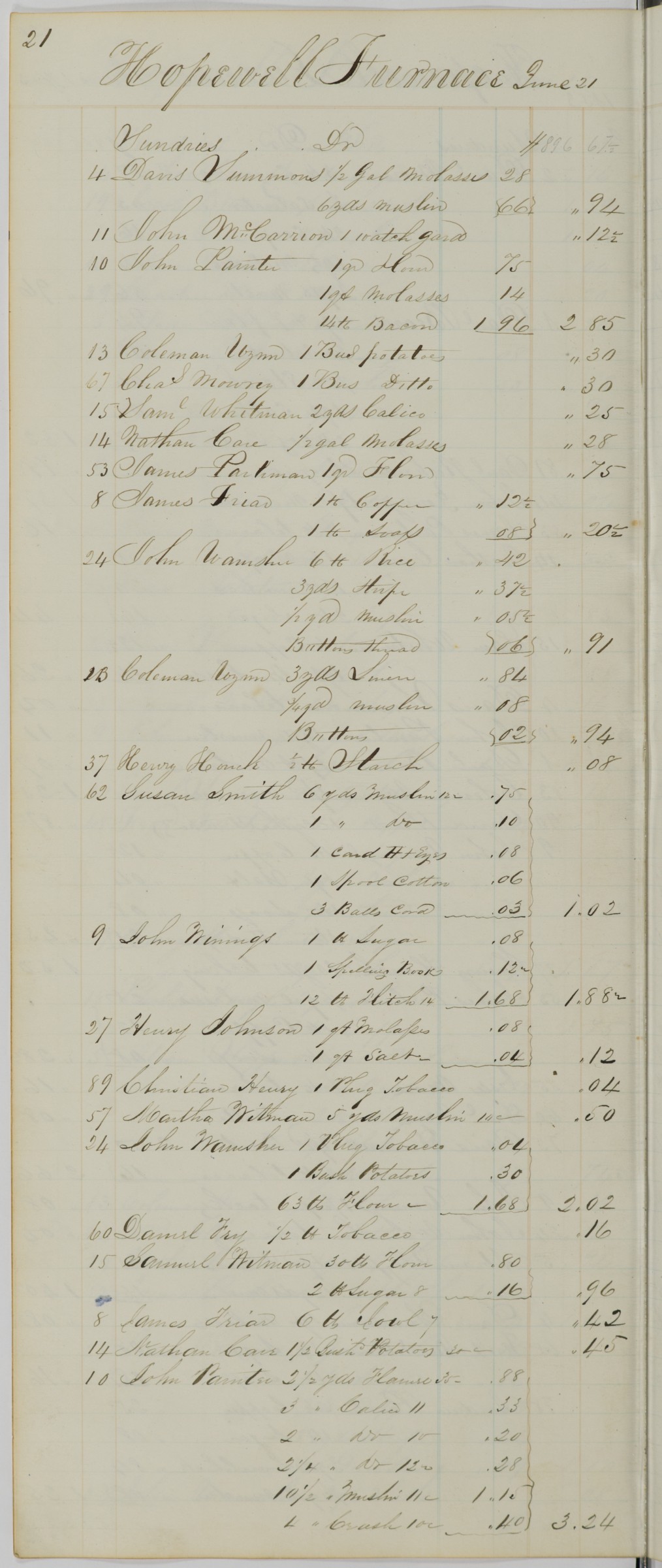 | Keyword(s): | hopewell furnace books, store journal, 1853 ; hopewell furnace national historic site (pa.) ; iron-foundries--pennsylvania--berks county--history ; iron industry and trade--pennsylvania--berks county--history ; hopewell furnace national historic site (pa.)--history ; hopewell furnace national historic site (pa.)--management ; berks county (pa.)--history, local | |