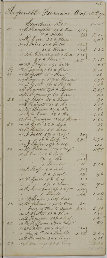 | Keyword(s): | hopewell furnace books, store journal, 1865 ; hopewell furnace national historic site (pa.) ; iron-foundries--pennsylvania--berks county--history ; iron industry and trade--pennsylvania--berks county--history ; hopewell furnace national historic site (pa.)--history ; hopewell furnace national historic site (pa.)--management ; berks county (pa.)--history, local | |