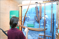 SCA Intern Using Audio Description tour to enjoy the displays at Homestead Heritage Center.