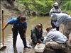 A group of five people looking at invertebrates collected from Cub Creek. SCA's assist the park in many ways and are able to gain valuable experience. In 2012 SCA's assisted with many projects including the many events surrounding the 150th Anniversary of the Homestead Act, monitoring of natural resources and removal of exotic species.