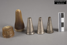 Probe. Horn case, base screws onto the top. Probes are silver or other metal that tarnishes. Three probes in set, graduated sizes. Manufactured by Aloe and Penfold Co.