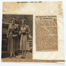 Newspaper clippings titled "Mr. Truman's Daughter in Edinburgh" from The Scotsman. The clipping include an article and a photograph with caption. The photograph is of Margaret Truman and Mrs. D Horton. The clippings are glued to a white paper that has the name of the newspaper and the date at the top.