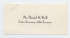 The calling card of Mr. Daniel W. Bell, Under Secretary of the Treasury, left at the Truman's home. The card has the name and title of the visitor printed in the middle.