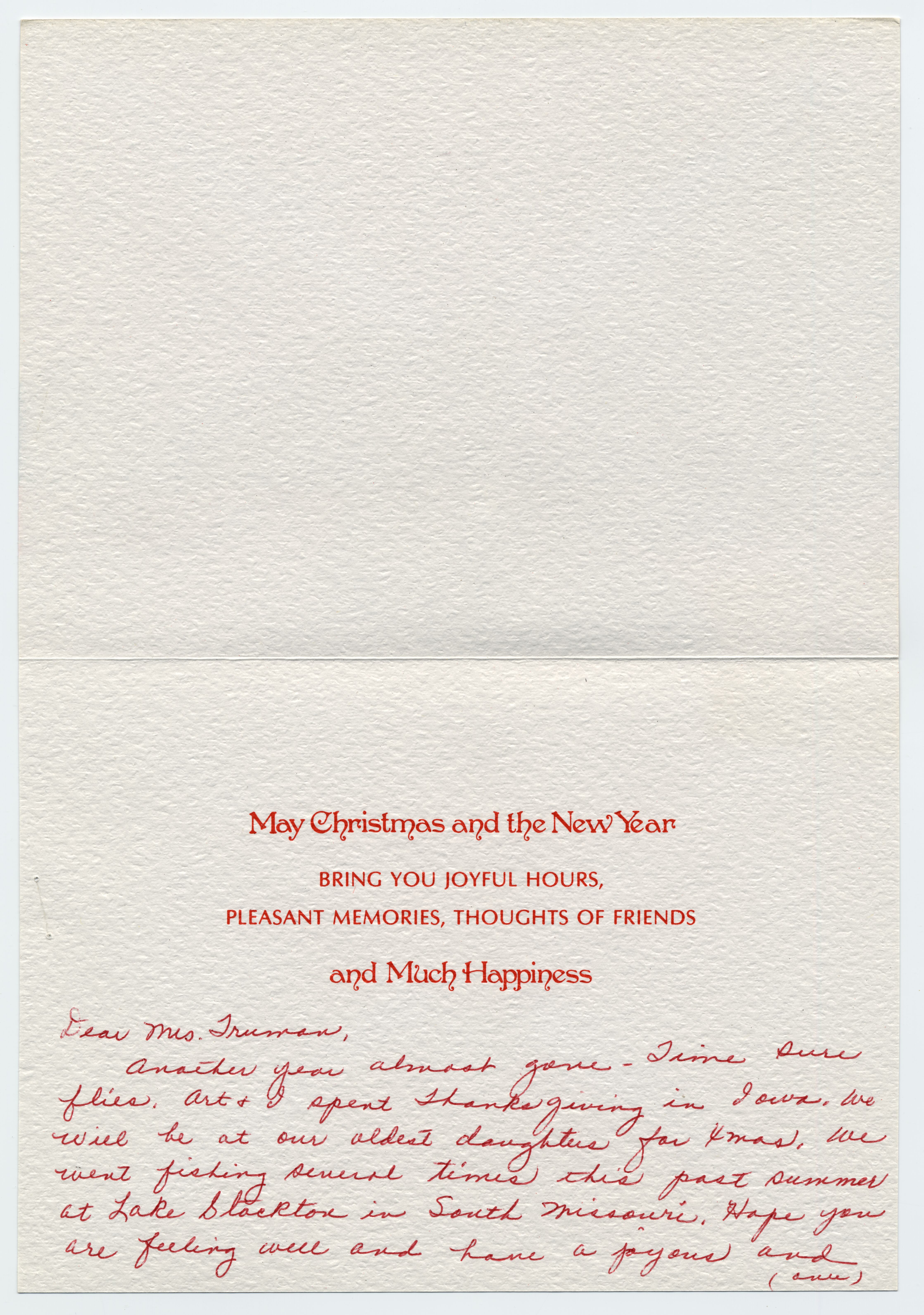 Holiday Card from Art and Jeanne Fann to Bess Truman