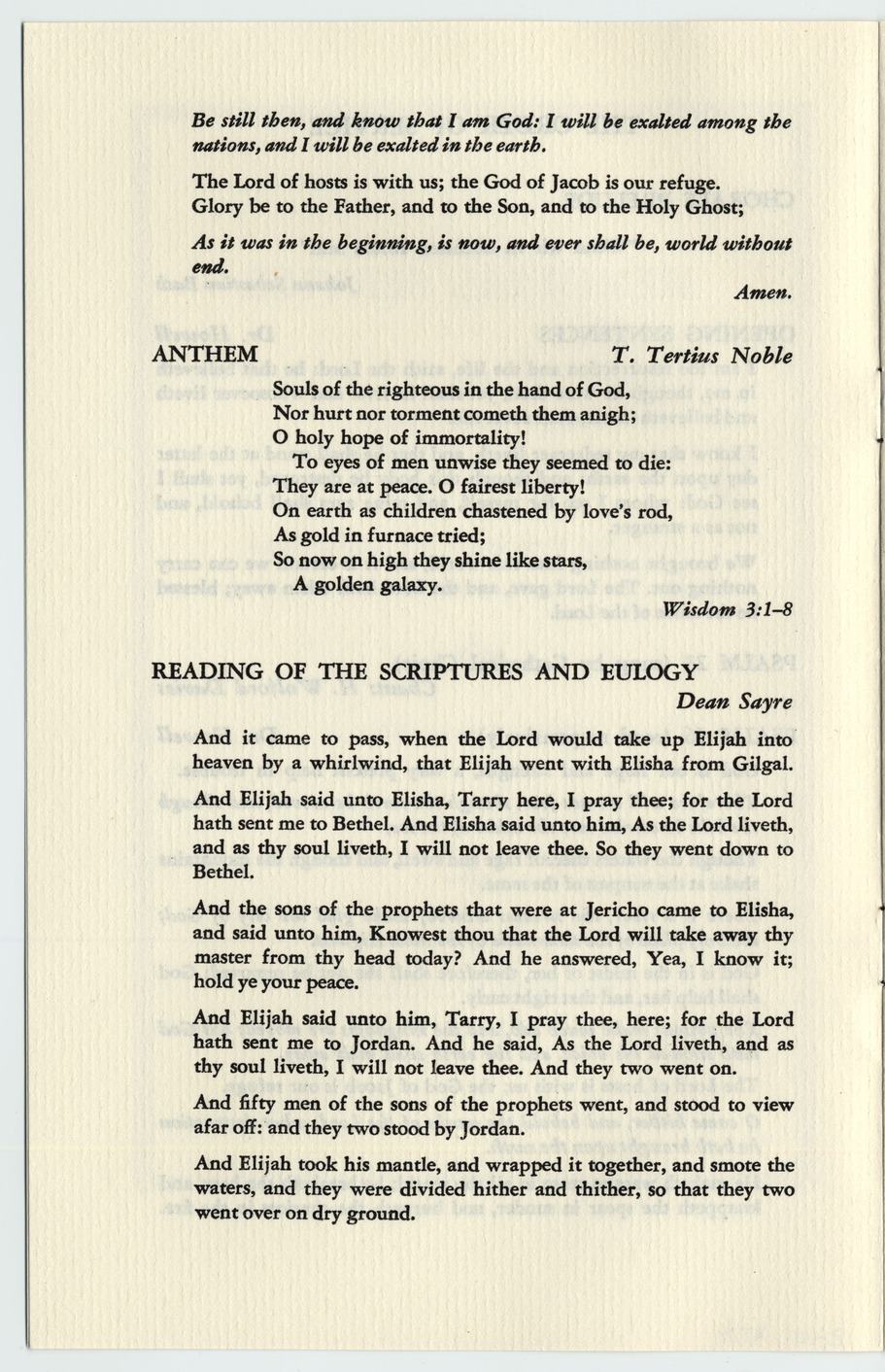 Page 2: The program for Harry S Truman's Memorial Service. The service was held in Washington D. C. on January 5, 1973. The program includes the songs, sermons, and Bible passages read during the service. The service also includes a prayer for Missouri.