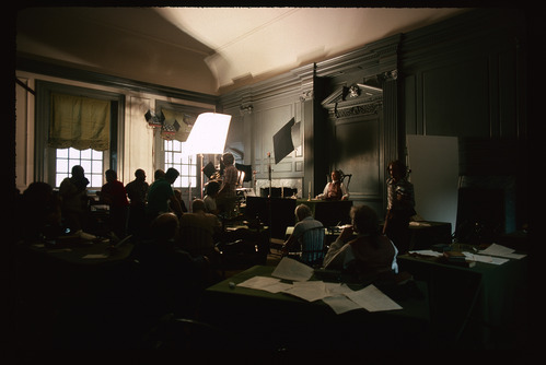 Independence Hall. Interior. 1st floor, Assembly Room. Looking northeast. Making of "Independence" John Huston Visitor Center Film.