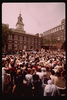 Independence Hall. President Gerald Ford's visit during the Bicentennial. Looking north across Chestnut Street. Tower clock, 11:20 AM.